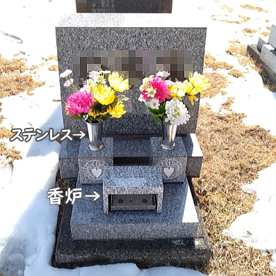 線香立てはお線香を外に立てるので、雨で火が消えたり灰が落ちて墓所を汚したりします。 |